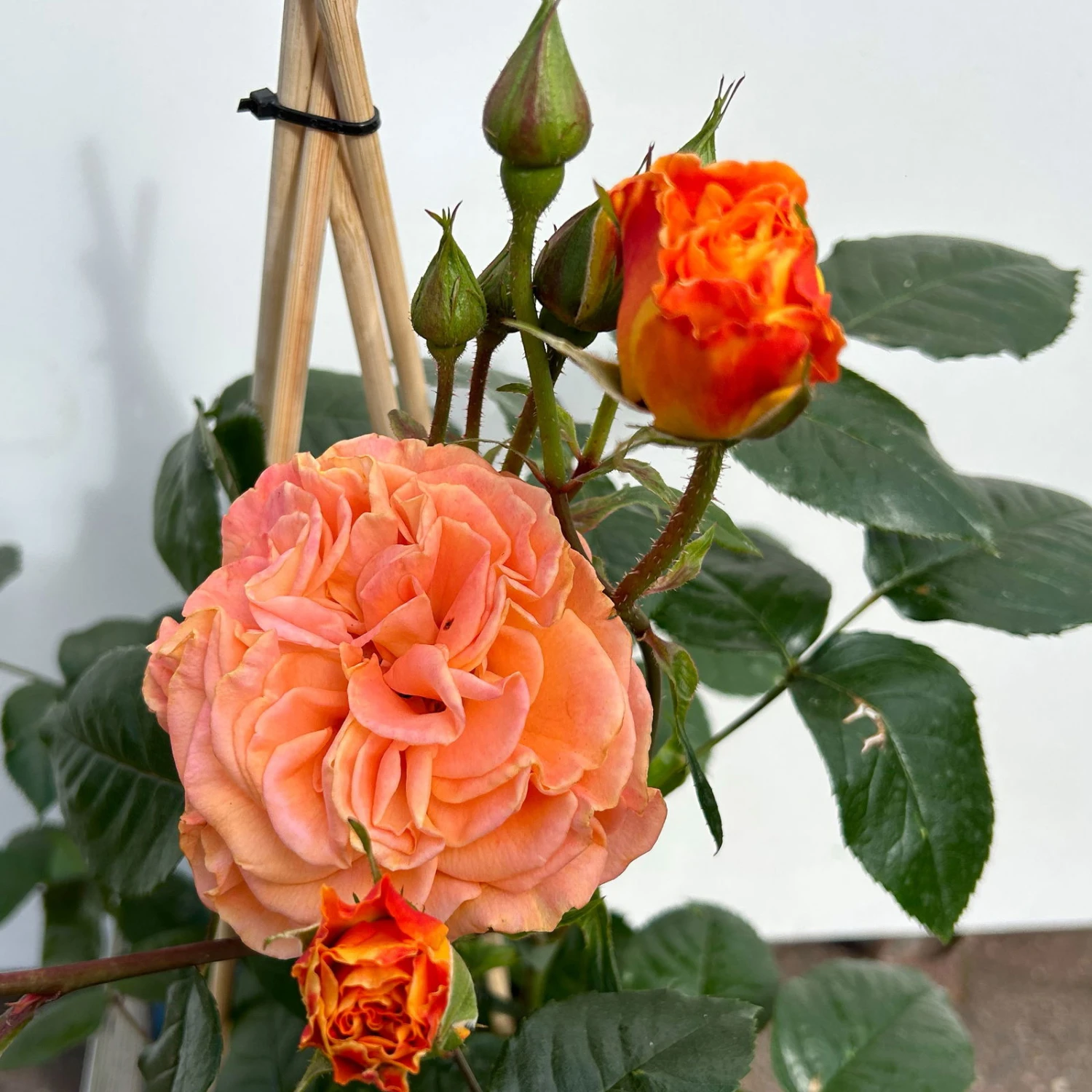 Auffällige Beetrose mit halbgefüllten, wunderschönen Blüten, die mit einem interessanten Farbspiel von orange über aprikot bis hin zu rosa überraschen. Dunkelgrünes, glänzendes Laub unterstützt die besondere Leuchtkraft der Blüten und macht die öfterblühende Beetrose ‚Westzeit®‘ zu einem besonderen Blickfang mit guter Fernwirkung.