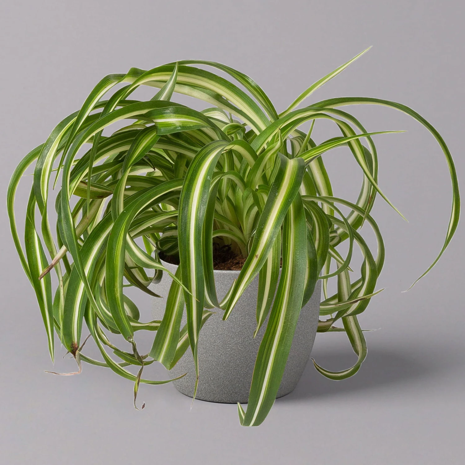 Die Grünlilie (Chlorophytum comosum) zählt zu den Klassikern unter den Zimmerpflanzen und war die Trendpflanze der 70er-Jahre. Seit geraumer Zeit feiert die Grünlilie als absolut pflegeleichte und robuste Grünpflanze ein Comeback und schmückt Wohn- und Badezimmer mit ihrem Retro-Charme. Charakteristisch sind die länglich-lanzettlichen Blätter, die je nach Sorte gelb bis grün gestreift sind. Die Blätter entwickeln sich überhängend aus einer Rosette heraus und formen einen dichten Blattschopf. Grünlilien erreichen bei guter Pflege eine Höhe von bis zu 40 cm.