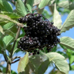 Die anspruchslose Gartenpflanze wächst breitbuschig, aufrecht, im Alter überhängend und erreicht eine Wuchshöhe von 2-4,5 m. Der Schwarze Holunder ‚Haschberg‘ ist eine ausgelesene Fruchtsorte, die sich ideal für Einzelstellungen oder Hecken eignet. Der Standort sollte sonnig bis halbschattig sein mit leicht feuchten, nährstoff- und humusreichen Böden.