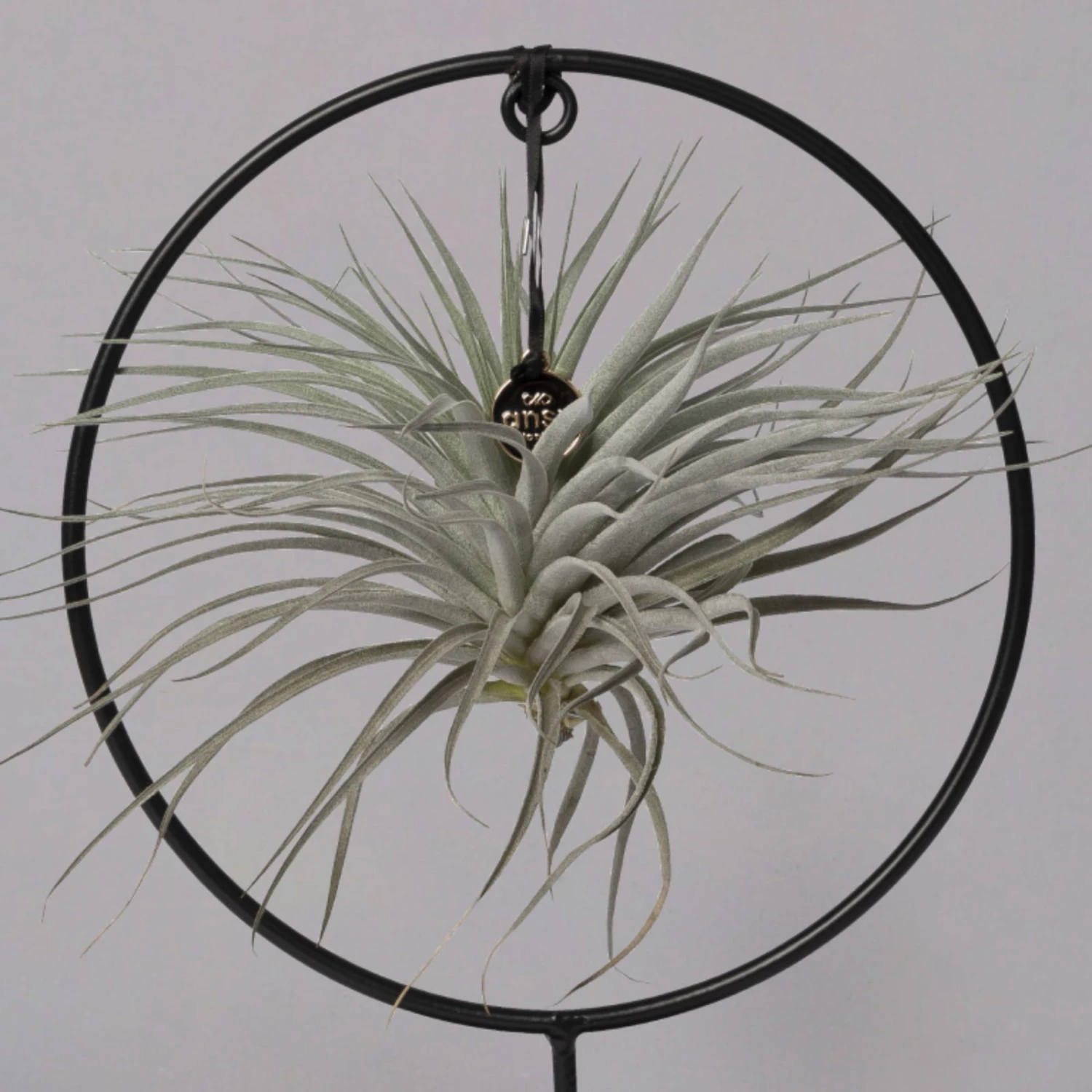 Diese Tillandise ‚Silver Ball‘ ist ein besonders außergewöhnlicher Blickfang für Ihre Wohnung: Die kugelförmige Pflanze mit den zauberhaft verdrehten Blättern scheint geradezu in dem modernen, minimalistischen Metallgestell zu schweben. Als besonderes Dekoelement auf Tischen, Fensterbänken oder Schränken kommt die aparte, eindrucksvolle Optik der Tillandsie voll zur Geltung und sichert Ihnen die Bewunderung Ihrer Gäste.